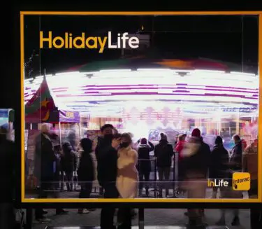 The HolidayLife campaign is led by creative agency partner Zulu Alpha Kilo Inc. along with media buying partner Media Experts. It is also brought to life with digital executions including a picture frame Snap lens, Spotify ads, a content series with Narcity, creator content and more. Interac’s sponsorships of the Distillery Winter Village, Noël Montréal and Vancouver Christmas Market are activated by Interac’s service provider, Proof Experiences Inc. Transparent out-of-home at the markets and window decals at local businesses extend the campaign execution to frame real-time HolidayLife moments