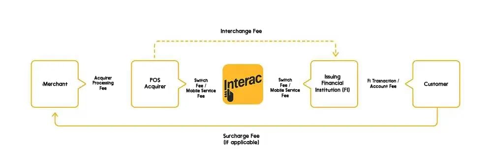 FI transaction/account fee – Customers may be charged a regular transaction account fee by their financial institution (FI) directly from their bank account for Interac Debit transactions. The application and amount of this fee varies and reflect the individual business decisions made by FIs. The fee may be included in a customer’s bank account package offered by their FI.