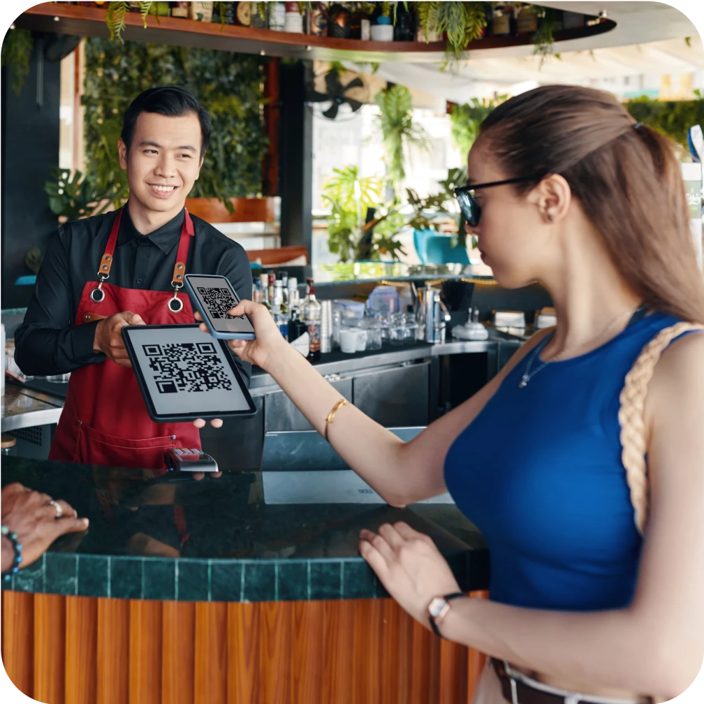 Oui. Les consommateurs peuvent effectuer un paiement dans une boutique ou après de toute petite entreprise au moyen d’un code QR menant à une demande de fonds.