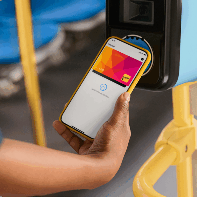 Au marché de Noël de Vancouver, le panneau d’affichage transparent cadre le carrousel Vie des Fêtes, auquel Interac paie l’entrée tout en recueillant des fonds pour la Fondation Rêves d’enfants.
