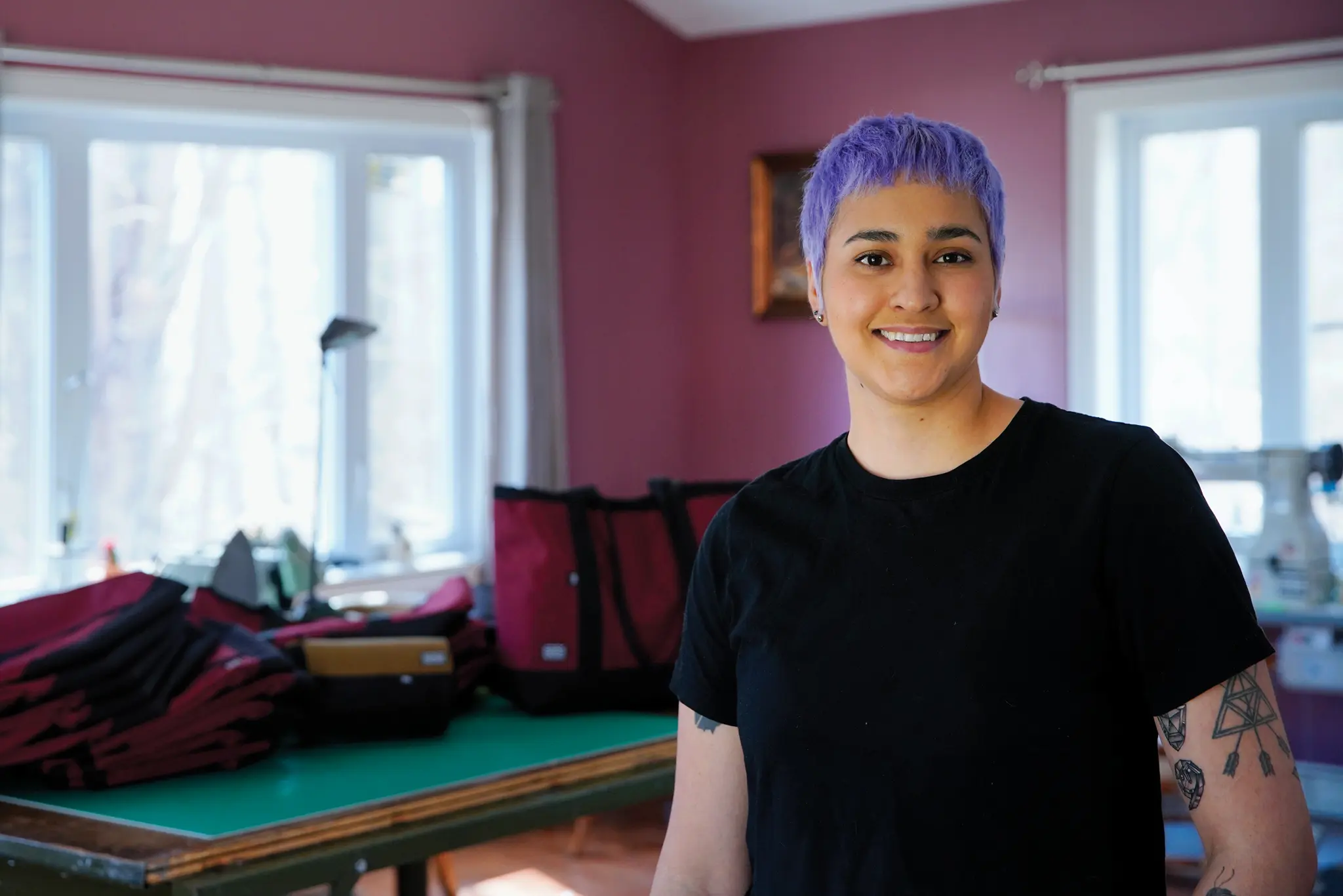 Installée à Kahnawà:ke, près de Montréal, KEL Tech Gear propose des sacs techniques durables, notamment des sacs à magnésie pour les grimpeurs ainsi que des sacs à vélo. De la conception des produits à la couture, en passant par le marketing, l’emballage et l’expédition, Kelsey fait tout elle-même dans son studio à la maison. Gérer seule une petite entreprise est un grand défi pour cette jeune diplômée, mais elle profite de chaque instant.