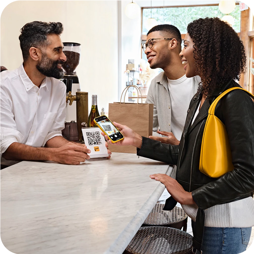 Oui. Les consommateurs peuvent effectuer un paiement dans une boutique ou après de toute petite entreprise au moyen d’un code QR menant à une demande de fonds.
