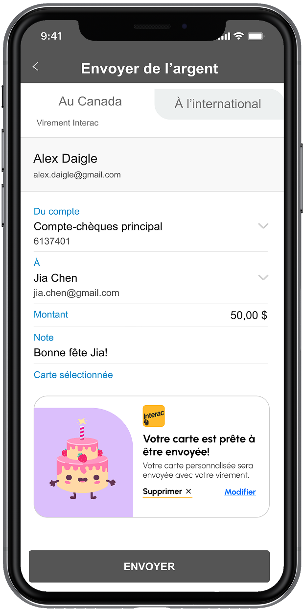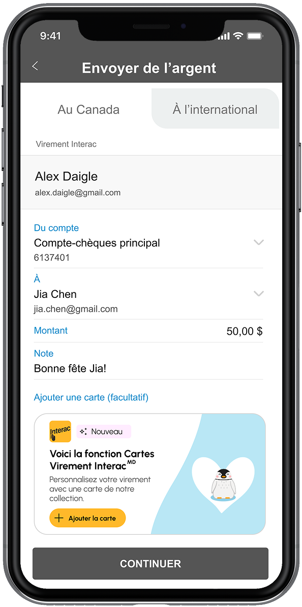 Voici les Cartes Virement InteracMD. Une nouvelle façon d’envoyer des fonds en ajoutant une touche personnelle à chaque virement.